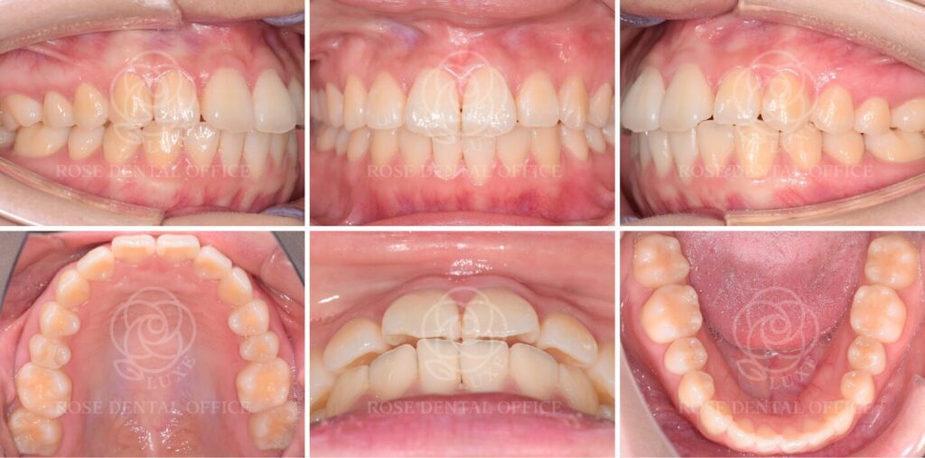 咬合関係および臼歯部の位置は安定しており、主に前歯部の審美的改善を目的とした矯正治療が適応と判断し、マウスピース矯正インビザラインGOで治療をしました。