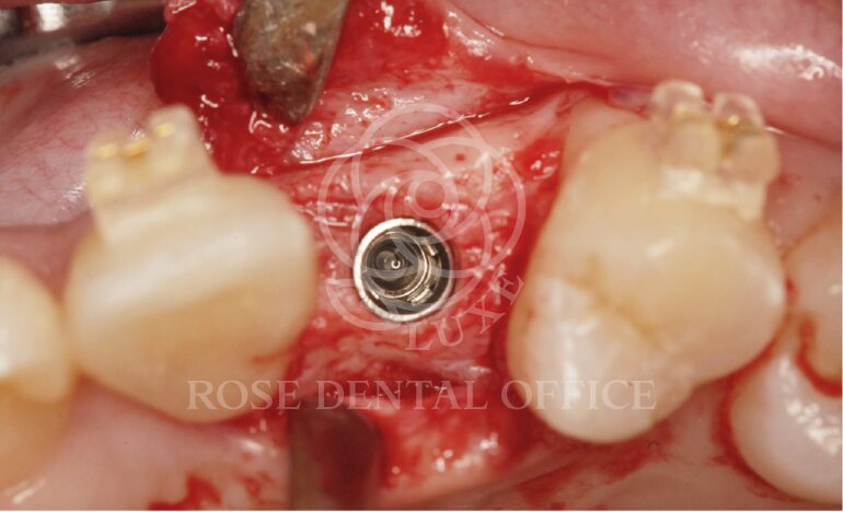 通常であれば矯正治療後にインプラント治療を始める為、治療期間が長くなりがちですが、矯正治療中にインプラントを埋入することで、矯正終了後と同時にジルコニアクラウンを装着し、治療期間を短縮しています。