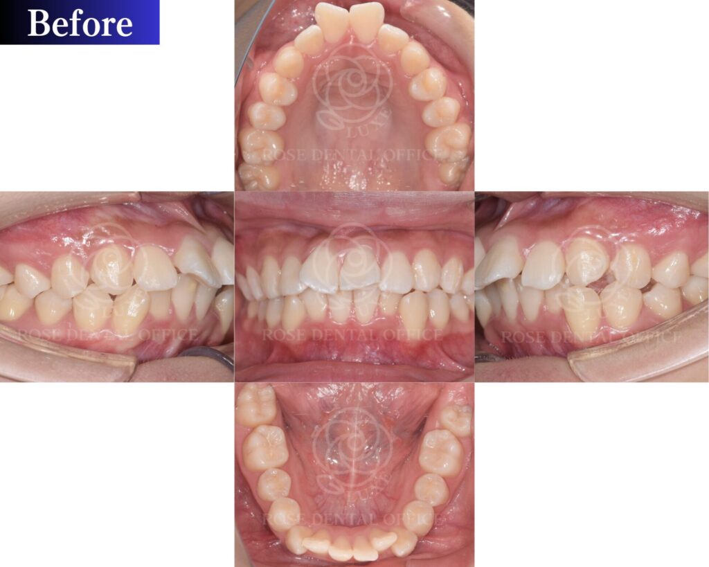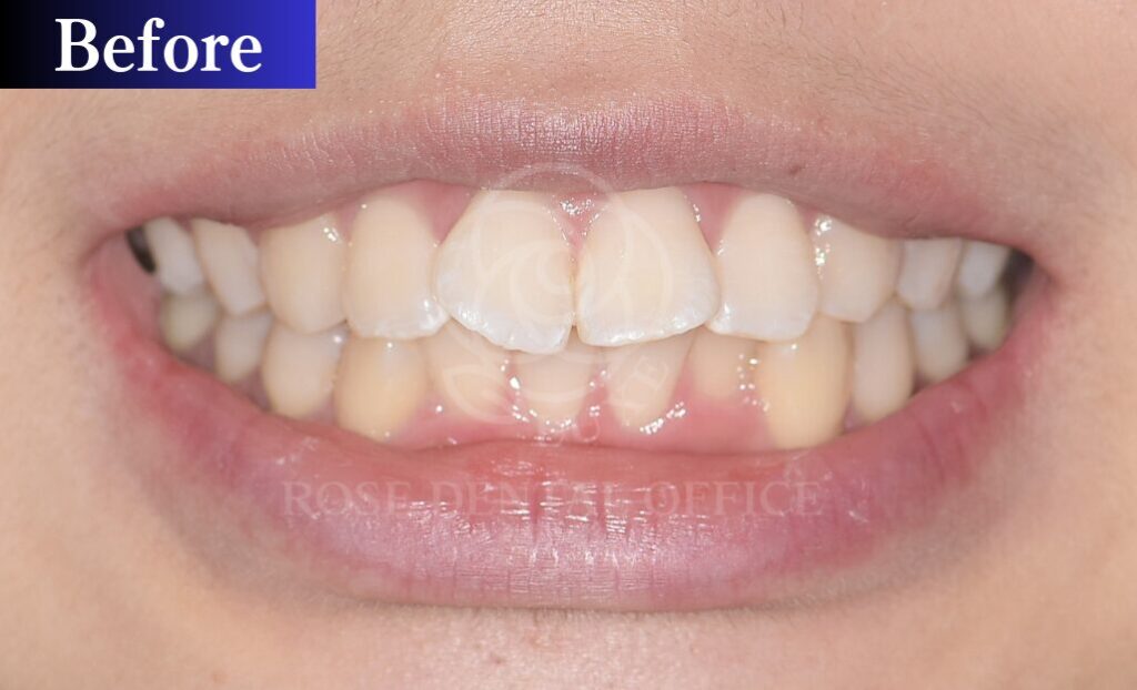 上の前歯の突出感が強く、歯列全体のバランスを整える必要がありました。
