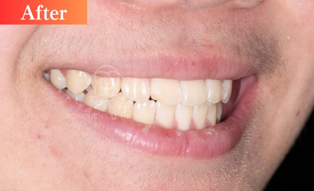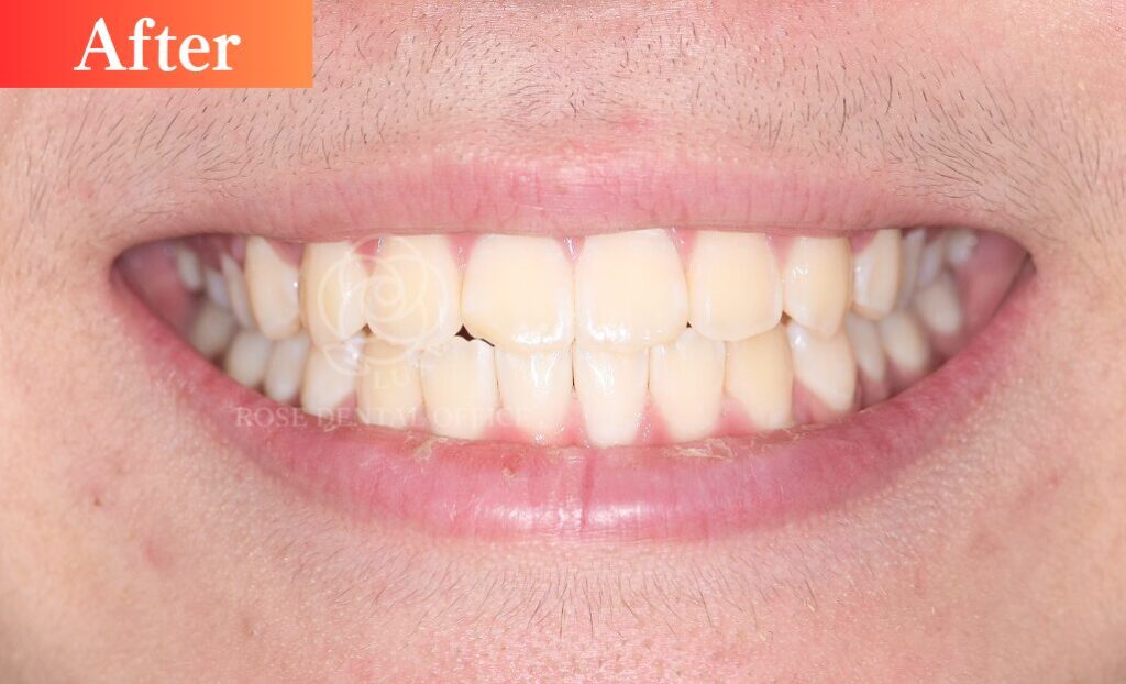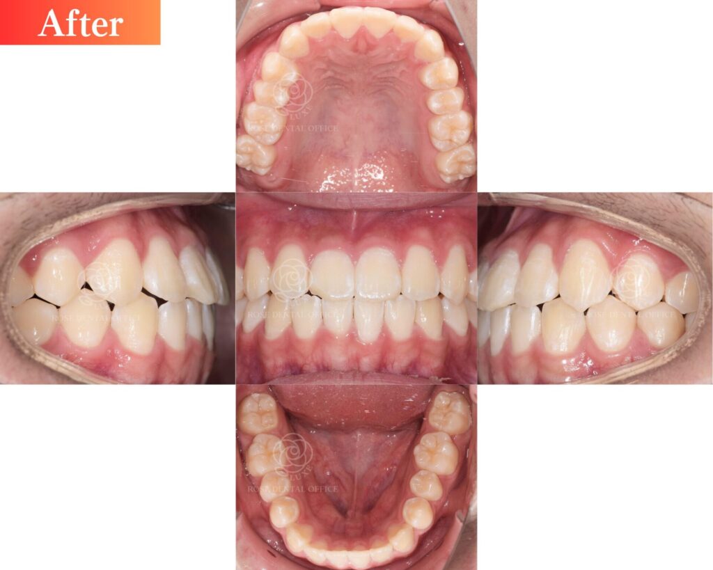 治療後には、内側に入っていた前歯が自然な位置に並び、美しい歯並びになりました。